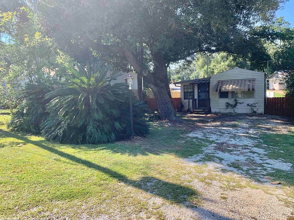 Seller motivated. Make an offer. Don’t miss out on this Spanish Cove home in Land Harbor. Sold furnished. The 14 x 8.2 addition has a closet and can be used for additional sleeping. There is a 10 x 12 building which holds the washer and dryer and has a workbench. This golf cart community offers many amenities and social events. If you like boating, the Lillian public boat launch is right down the road. Please do not walk property without your Realtor. New Fence, water heater, plumbing and rebuilt motor on the HVAC splitter unit 2022. Sold AS-IS.