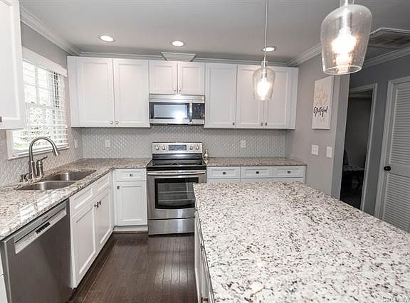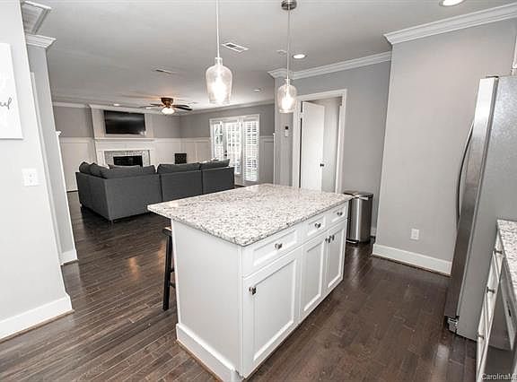 Charming ranch on nice, flat lot is located in the heart of Cotswold on sought after McAlway Road. This home has been transformed into the open concept of your dreams! Enter into a bright, spacious family room featuring a custom tiled fireplace/hearth and wainscoting, which opens to a dreamy white kitchen. Light cabinets accentuate the custom gray tile backsplash, granite countertops & SS appliances. Gleaming wood floors throughout complement the calming gray palette that continues into three generous bedrooms. The master bath features a full tile shower and frameless glass door and the laundry room just off the kitchen is perfect for your front load W/D! From the laundry, enter into the private, fully fenced, lush backyard. Enjoy relaxing on the low-profile deck overlooking your oasis in the city. 406 McAlway is minutes to Uptown, SouthPark, Plaza Midwood & NoDa... the location can't be beat! Prepare to fall in love with this Cotswold gem! Video Tour: bit.ly/406McAlway