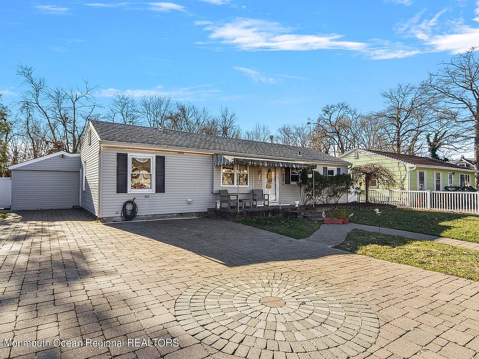 This charming 3-bedroom, 1.5-bath home is a perfect blend of comfort, convenience, and style. Nestled in a prime location near shopping centers and major highways. Key Features include modern updated eat in kitchen with ample counter top space, dedicated laundry room, Large den and dining room with access to rear deck, above ground pool, patio and shed. This well maintained property also includes house generator and oversized, oversized paver driveway, covered front porch and spacious yard,