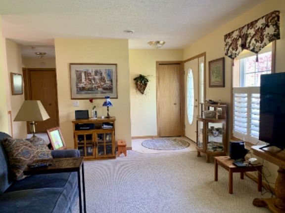 LOOKING FOR ONE LEVEL LIVING? THIS IS THE ONE! Starting at the covered front porch, where you can sit and relax in the summer. The foyer has 2 closets to store boots, shoes, and jackets. The living room has a gas fireplace to keep you cozy in the cooler weather, newer windows and plantation shutters. The large eat-in kitchen has updated granite countertops and a brick backsplash, a flat top stove, an above-stove microwave, and a solar tube for more natural light. There is a pantry and another closet for storage. Both bathrooms have new toilets, and one also has a solar tube. The primary bedroom has a large closet with some built-in shelving, and a mini split A/C. The attached 3/4 bath has a new shower door. The utility room has a gas boiler for the in-floor heat for those chilly winter mornings, and an air exchanger. Going out the back door, you will find a beautiful, concrete patio including a privacy fence that is great for those BBQs and outdoor get-togethers. This gorgeous corner lot has beautiful flower gardens, etc. and a new storage shed. The 24x24, 2+ car detached garage has shelving for yet even more storage! This charming home is updated and has been meticulously maintained. Make your appointment to view today!