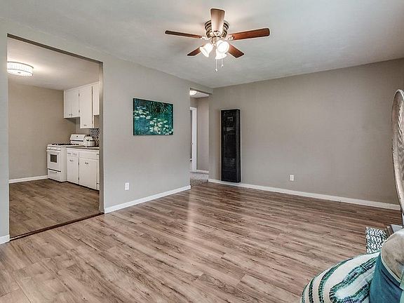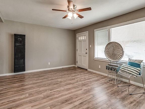 Walking distance to Tinker AFB!!! Walk trough the charming orginal front door with sweet little stained glass windows to find an open concept home that has been redone! Gorgeous hard-wood floors greet you in the living room with the a passive picture window on one side and a view of the oversized, charming kitchen on the other. The kitchen has a goose-neck faucet , new appliances, and an indoor laundry area. The bedrooms are sporting new carpet, the bathroom has a new vanity, and the roof is metal....Wait??!?! What???? A metal roof and a masonry fence in this price range? IT IS TRUE!