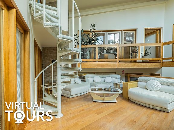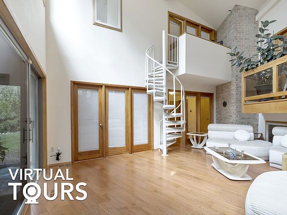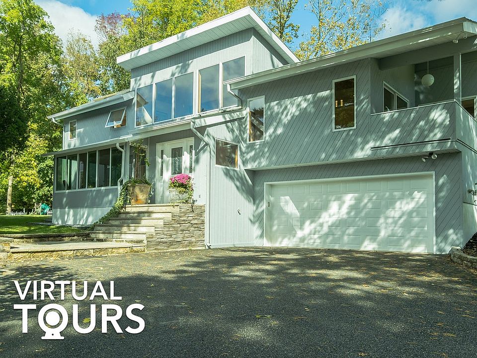 One of a kind 3 bd / 2.5 ba home in a highly desirable neighborhood! This 3179 sqft modern beauty is sure to impress with its split floor plan, bright natural light, high ceilings, hardwood floors and accents, and French doors throughout! The main level features an entertainer's dream living room with exposed wood beams, sliding glass doors to the sunroom, and a striking spiral staircase. Two bedrooms sit off this space, as well as a bath, containing a glass vessel sink and a walk-in glass door shower with tile surround. Upstairs, you'll find a cozy seating area with a fireplace. Flow into the gourmet kitchen, equipped with granite countertops, tile backsplash, stainless steel appliances, a 5 burner stove, skylight, recessed/pendant lights, and bar seating. Access the front facing patio through sliding glass doors in the kitchen or dining room. A half bath completes this level. Situated upstairs is the expansive primary suite, offering soaring ceilings, a wood vanity, soaking tub, glass door tiled shower, and bidet! A bonus room provides a great office space and access to the rear facing patio. The lowest level of the home has a den, containing an exposed brick wall, fireplace, and track lights - perfect for a movie room or gym! Entertain, relax, and garden in the spacious backyard, where there is a greenhouse, playset, lush lawn, and plenty of mature trees! Central A/C and Forced Air heating. Two car garage. Located near trails, restaurants, and conveniences! Easy access to I-287 and NYC. Buyer should verify all information.