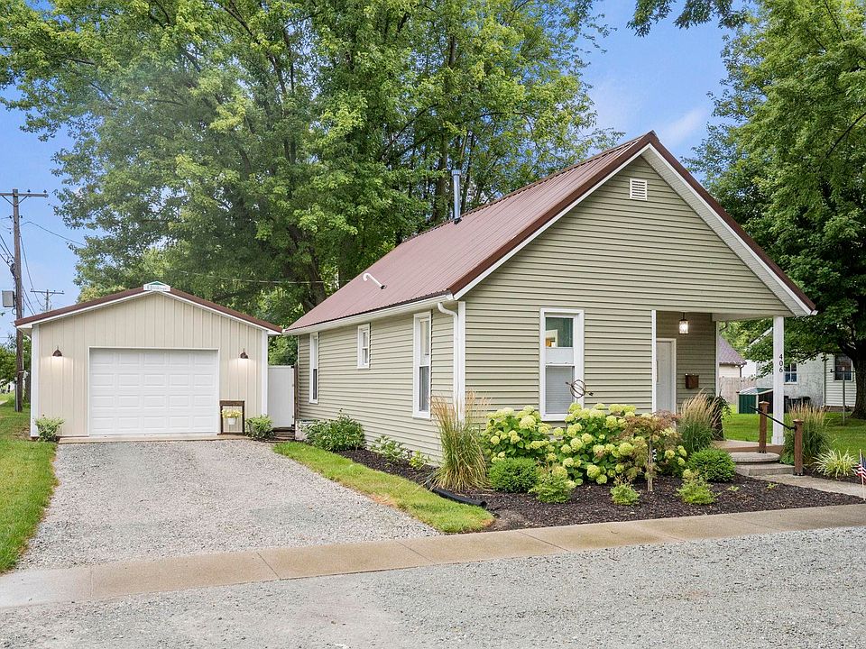 You don't want to miss out on this adorable 2 bedroom, 1 1/2 bath with 902 finished square feet. Open concept floor plan. Laundry room with a stackable washer and dryer. Detached oversized garage with shelves for storage. Nice new paver patio out back. Updated landscaping.