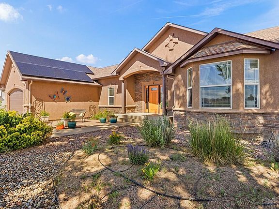 Living Large in Pueblo West! SOLAR is included with this Exceptional and spacious home with Finished Basement. One Acre CORNER LOT in a super convenient location ( less than 5 min. from stores and HWY 50). You will recognize quality and curb appeal as soon as you lay eyes on this home! Excellent floorplan. The Great Room is very spacious and features a beautiful stone fireplace and 12 foot vaulted ceiling. Split bedroom design with a tranquil Master suite with jetted tub and step in shower. The Kitchen features ample counter and cabinet space, bar, under cabinet lighting and all appliances included and so much more! Basement is completely finished with 10 ft ceilings and 2 large bedrooms. One of the bedrooms has it's own ensuite with a spacious walk-in shower. The giant family room/game room combo has it's own half bath. Perfect space for Entertainment with a wet bar and a drink refrigerator. Covered rear deck so you can enjoy those amazing Pueblo West sunrise and sunset views. Solar notes: Owners only pay $10.00 per month for electricity access fee so say goodbye to electric bills!