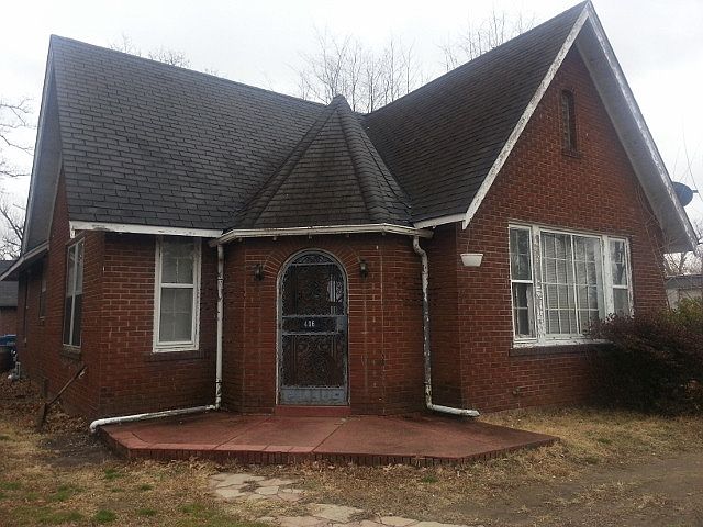 Step into this spacious brick home with architectural details galore! This home features several built-ins, beautiful antique arch-top front door, hardwood flooring, spacious 16x30 rear deck, privacy fence in the back yard, alley access, shed, brick construction, partial basement for storage and more. Home has shared driveway and shared shop building. The right side of the shop with the basic entry door is included. The left side with the bay door is the neighbor's.