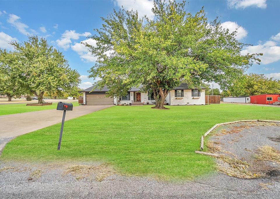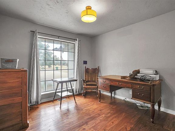 Check out this beautiful brick home in Granite, Ok! This home sits upon the corner of 2 lots with large shade trees out front and a privacy fenced in backyard. At approximately 2,130 sq ft this home features 3 bedrooms and 2 1/2 bathrooms with an additional room that can easily be made into an office or formal living area. The large living room holds a wood burning fire place, engineered hardwood flooring and a grand double pane window for an abundance of natural light. The three bedrooms are located on the south end of the home along with the 2 full bathrooms. Making your way through to the opposite end, you will find the kitchen that includes double wall ovens, a dishwasher, an electric range top stove and appealing granite countertops. The large backyard features a covered patio for evenings outdoors and a workshop big enough to accommodate an extra vehicle!