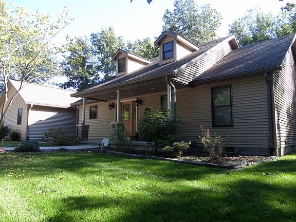 Price just reduced!!!! This home is beautiful, the setting is beautiful and the location is perfect!!!! This new listing has approx. 1900 sf, with 3 bedrms, 2 full baths, and an 'all season' room that overlooks a landscaped back yard w/fire pit & woods. This open floor plan has custom kitchen cabinets by "Garver". A front porch you can sit at & enjoy the view. 3 Car finished att garage w/concrete parking & circle drive, Also a new 16x20' storage shed w/concrete floor. This home is handicap accessible. Call for your apt today!