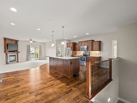 Corner fireplaceOpen-concept layoutFinished walkout lower levelHardwood floorsUnbeatable viewsGranite countertopsFresh interior paint