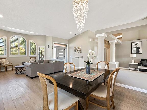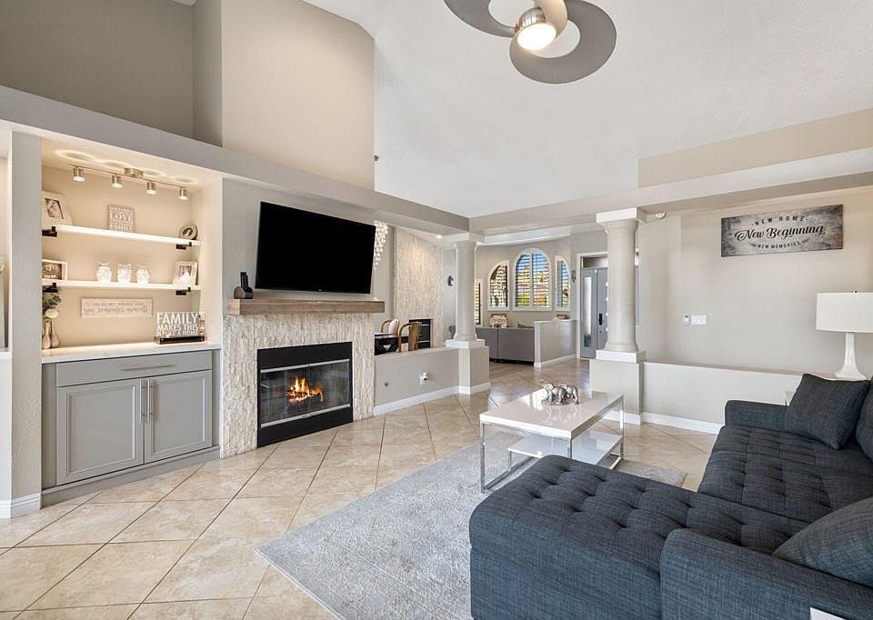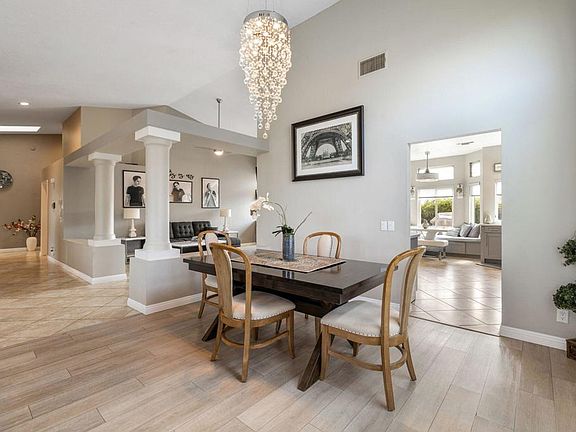 Offered TURNKEY FURNISHED! Experience luxury living at its finest in this extensively upgraded 4 bedroom home with 4 fireplaces and a 3 car garage! Over the past four years, this home has been meticulously renovated, boasting a custom grand front entrance, new windows, 2 HVAC units with smart thermostats, kitchen with Bosch appliances, a custom eat in nook and wet bar area. The 3 bathrooms have been remodeled with a custom shower in the primary bath. Other upgrades include LED lighting throughout, window treatments, upgraded outlets with dimmers and USB options, new hardware throughout, interior and exterior paint, custom built in cabinets in the garage, EV ready outlet in the garage, new flooring and more! There are too many upgrades to list. The primary bedroom has a spacious closet and an added bonus room that can serve as a small office or an additional closet. The stunning backyard offers lighting, a fountain, citrus garden, above ground spa, an outdoor fireplace and a multi-zone sprinkler system. There are energy efficient solar panels leased through Renova Solar for big savings. The HOA includes a fitness center, pickle ball courts, internet/cable, a community pool within close proximity, full front landscaping and more! This home offers unparalleled comfort, style, and convenience, making it a dream retreat for discerning buyers.