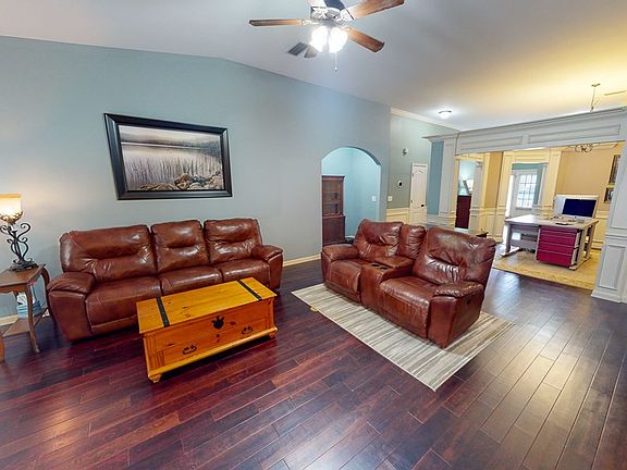 WOW, WOW, WOW !!! From front elevation, open floor plan design to finished product. You will not be disappointed with your visit here to Halls Creek S/D. This single-story brick / stone / composite exterior reveals a look of elegance in this executive style home. Upon entering the spacious foyer your eyes are immediately drawn to the 9 - 11 ft. ceilings, enhanced by exquisite trim work and unique architectural design utilized throughout the home, offering four bedrooms and three full baths. This comfortable home also offers a formal dining room (currently used as an office). The large kitchen shows off an abundance of cabinets & countertop space. In addition, what an enormous walk-in pantry that adds to the storage capacity of this well-appointed kitchen. The breakfast area offers informal warmth for casual dining or other meals. The open family room with stone fireplace can be used for gas or wood burning heat. This great home also offers an attached two car garage and totally fenced in rear yard with additional concrete slabs poured in convenient areas to accent home and yard. Don't waste time, call for your appointment quickly. What a JEWEL!!!