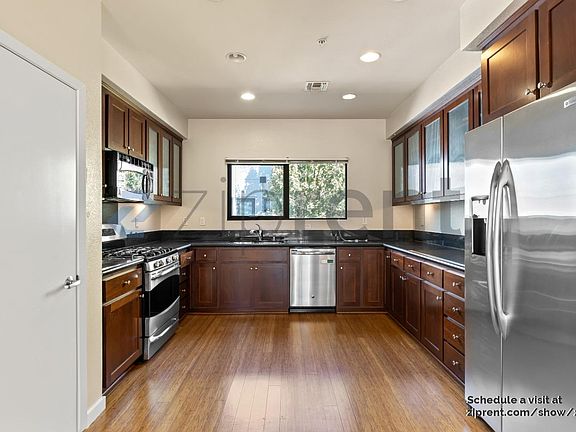 This property is available. Please inquire on this site to schedule a showing. *Gorgeous 3 bedroom 3.5 bath Tri-level Townhouse w/Attached 2-car Garage!* Welcome to Zephyr Gate! A townhouse community located at the foot of Oakland's industrial shores. This pristine townhouse was built in 2011 and is over 1,500 sf. High ceilings and an abundance of sunlight accompany every floor. A private suite with its own bathroom resides on the lower level as a flight of stairs leading to the main floor awaits you. The main floor consists of a great room, perfect for entertaining your guests with eco-friendly bamboo flooring and a half bathroom. The exquisite kitchen features granite countertops, stainless steel appliances, and a large pantry. Upstairs is a loft-style third floor which features two additional private suites each with its own bathroom. This thoughtfully designed home is ideal for entertaining and enjoying life. *Balcony Access from Living Room *Central Heat and Air Conditioning *Hardwood Flooring on Main Level, Carpets in Bedrooms *Front Load Washer and Dryer *Stainless Steel GE Profile Appliances *Recessed Lighting Throughout *Common Area Courtyard with Fountain *Direct Access to Highway 880 and the Greater Bay Area *Minutes to Target, Babies R Us, Home Depot, Best Buy, IKEA, Bay Street Emeryville and more Lease Terms: Tenant Pays: PG&E Owner pays: Water, Garbage and HOA dues Pet Negotiable w/additional $500 deposit Heating: ForcedAir Cooling: Central Appliances: Dishwasher, Refrigerator, Range Oven, Microwave, Garbage Disposal, Washer Laundry: In Unit Parking: Attached Garage, 2 spaces Pets: Cats Allowed, Dogs Allowed Security deposit: $4,800.00 Included Utilities: Garbage, Water Additional Deposit/Pet: $500.00 Disclaimer: Ziprent is acting as the agent for the owner. Information Deemed Reliable but not Guaranteed. All information should be independently verified by renter.