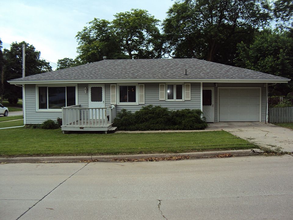 Move-in ready is the easiest way to describe this well maintained ranch style home! All the heavy lifting has already been done; including roof, siding, windows, flooring, furnace/central air, water heater, and more! The bathroom and kitchen have both been recently remodeled as well featuring beautiful custom tile work. In addition to a large eat-in kitchen and living room, the main floor has two large bedrooms with ample closet space, and a main floor laundry room! The full partially finished basement has been professionally waterproofed and could easily be finished into additional bedrooms or living space. This property is located on a level corner lot close to the elementary school, and also has an oversized one car garage. This great property is priced to sell quickly!