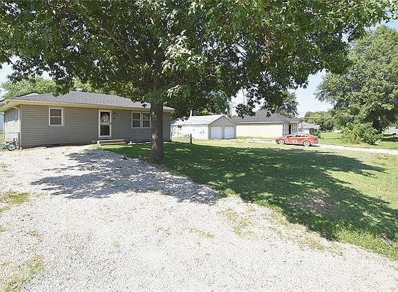 Charming ranch home with quality workmanship in the updates, Got lots of big boy toys? Check out the large 32' x 35' outbuilding. Home is close to downtown and the park. Spacious living room. The gorgeous eat-in kitchen is large and open with lots of cabinetry, granite countertops, unique backsplash, tile floor, newer dishwasher. Updated bathroom. Beautiful wood floors. Built-ins. Ceiling fans. Nice large deck off the kitchen. Newer siding, roof, and HVAC. Discover a great community in this wonderful town north of Kansas City.