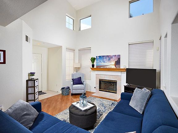 HIGHLY SOUGHT AFTER SANTEE NEIGHBORHOOD OF MISSION CREEK. This fantastic 3 BR, 2.5 BA home with 2 car garage is located on a quiet Cul-de-sac. Boasting an open floor plan, high ceilings, lots of windows, vinyl, and tile floors. Inviting living room with gas fireplace. Spacious and open eat-in kitchen, stainless steel appliances + refrigerator. Enjoy meals in the light & bright dining room. Primary bedroom with large closet. Step outside to find a private backyard that is perfect for relaxing or entertaining. The community offers its residents access to the pool, tennis courts, basketball courts and parks! Located near great schools, shopping, and restaurants. If you’re looking for a great home in Santee, this Mission Creek home is the one!