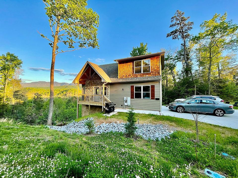 Mountain Views in city limits! Under construction & no need for a construction loan. No HOA and no restrictions.Brand new three bedroom, three bath mountain chalet in the city limits of Gatlinburg that is fully furnished and just 10 minutes from downtown Gatlinburg. Many people have been gravitating towards modern mountain chalets that feature real stonework, cedar shakes, and Hardie siding. This hybrid style property still features all the wood accents owners and renters love with engineered hardwoods floors, 6" and 12" tongue and groove walls and ceilings, timber frame accents, and Amish style Sassafras furniture. Floor plan is an open concept and the main level features the living room with stone fireplace (Natural gas), full kitchen with upgraded cabinetry, stainless/black or slate appliances and leathered granite countertops, stackable washer/dryer, and one master king size suite with full bathroom. Upstairs there is a loft area with pub style, dual player arcade machine that is built into a whiskey barrel with neon lights. Surely to entertain guests of all ages. Just off the loft is the second master king size suite with full bath. In the lower level you will find the recreation room with sleeper sofa, pool table or air hockey, flat screen TV, and stand-up multi-cade machine with over 60 games. The third master king size suite and full bath are also located on this level. All bathrooms feature the same upgraded cabinetry line as the kitchen with leathered granite countertops and ceramic tile floors.The back deck will also feature a 4 person hot tub.This cabin is built with energy efficiency in mind. All walls are insulated with cellulose insulation as well as spray foam in the ceilings. Between the insulation package and the high efficiency HVAC, your energy bills should be very attractive. Cabin is on city water and sewer as well. Cabin is sold with a 1 year builder warranty. ALL PICS ARE FROM CABIN NEXT DOOR. FINISHED PRODUCT WILL BE SIMILAR, NOT IDENTICAL.