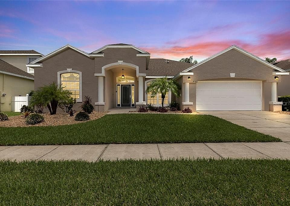 We are pleased to present this highly-rated 5-star vacation villa nestled in the distinguished golf community of Highlands Reserve. This luxurious 4 bedroom, 3 bath pool home boasts breathtaking views of the 4th, 5th, 6th, and 7th fairways, making this premium golf home site one of the most sought after in the community. This villa stands out from the crowd with a designer furniture package, cool and modern color palette, open floor plan, and spectacular golf course views. This gorgeous, beautifully maintained, and upgraded home at 406 Prestwick Drive shows true pride in ownership. This versatile property is zoned for short term rental, allowing you to use it as a second home, vacation home, or even a primary residence. A few of the noteworthy upgrades include new cabinet hardware, Frigidaire smudge-proof stainless steel kitchen appliances, pool table, and fresh interior paint. This well-appointed residence has dual master retreats with the main including a separate sitting area, ensuite with dual vanities, and walk-in closets. The second master retreat is located in the rear of the home featuring a private bath leading to the pool area. Your new home provides an outdoor oasis to relax and unwind or entertain your family and friends. Take a dip in your pool or enjoy a beverage in your spa all while listening to your favorite music on the Bluetooth speakers. The large deck area has seating for 10 under the covered lanai along with lounge chairs to soak up the year-round Florida sun. The current owners have added a custom retaining wall with an 8-foot pool deck extension, making this home truly unique and a must-see. This single-story vacation villa has one of the lowest homeowners association fees in the area and comes fully furnished and rental ready. Just minutes from restaurants, shops, and local attractions, including Walt Disney World and so much more. Just bring your toothbrush and clothing, everything else is here awaiting your arrival.