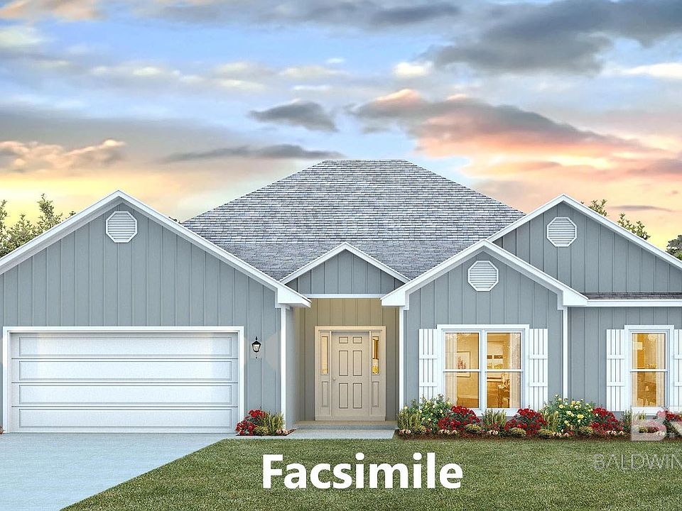 New Phase in Raley Farms now open for sale! Welcome back to one of the fastest selling communities in Gulf Shores, Alabama! This popular community is just minutes from the white, sandy beaches that Gulf Shores is famous for having! Discover sophistication in the Kaden floorplan. This one-story, 5 bed, 3 bath home features 2,409 square feet of open living space and a split bedroom plan. Features of this home include EVP throughout, quartz countertops, soft close cabinets, large breakfast bar, walk in pantry, large single bowl under mount stainless sink, stainless steel appliances, two ceiling fans, trey ceiling, crown molding and two covered patios front and back. There is plenty of room for parking with the attached double car garage and driveway. Community amenities include a large community pool, sidewalks, common area, and more! This home is being built to GOLD Fortified Standards potentially saving you on insurance. The home also comes with a 'Home Connected' (SM) Smart Home package, 1-year builder's and 10-year structural warranty. Home is under construction. Estimated completion of April/May 2025. Pictures are of similar home and not necessarily of subject property, including interior and exterior colors, options, and finishes. Buyer to verify all information during due diligence. Estimated Completion of April 2025.