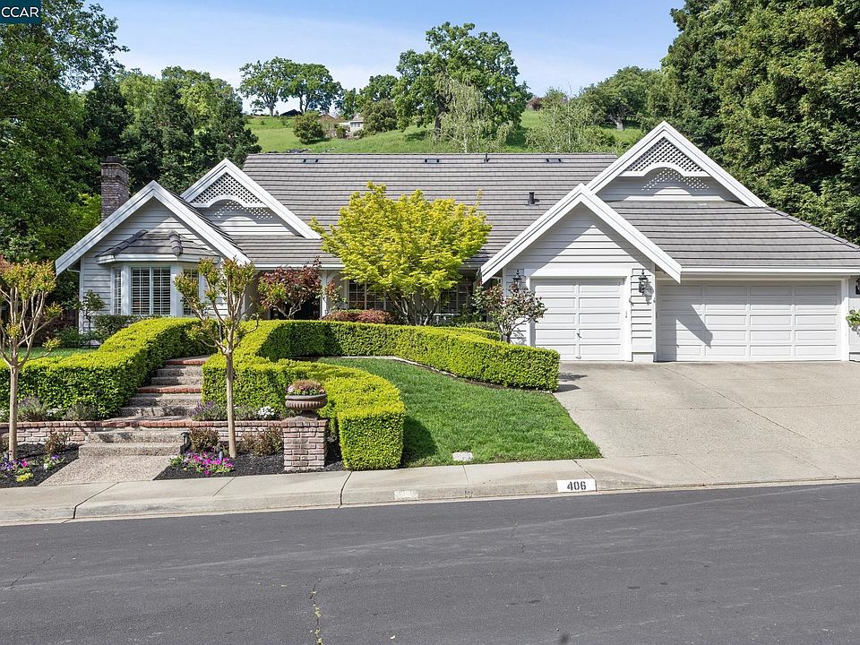 Step into your dream home nestled in the heart of the highly sought-after neighborhood of Bryan Meadow, where storybook charm meets modern elegance. This extraordinary single-story residence, tucked away at the end of a tranquil court, offers the utmost privacy. Recently updated, this inviting home boasts a seamless open-concept layout, marrying the kitchen & family room under a soaring white wood beam ceiling. With beautiful hardwood flooring & custom finishes throughout, every corner exudes warmth & sophistication. Outside, the park-like setting includes mature landscaping, flat lawn areas, entertainment patios, & a swimming pool/spa. As you unwind, take in views of Mt. Diablo & surrounding hills from your spacious front porch, a perfect spot for morning coffee or evening relaxation. Owned solar/gas heat for pool, & electric solar for home. Easy access to hiking/biking trails, and close to all levels of the award-winning schools in the San Ramon Valley School District. Minutes to freeways 680/24 and downtown Alamo.