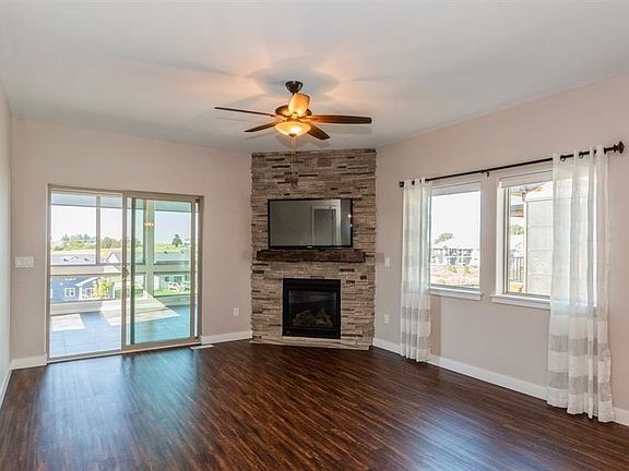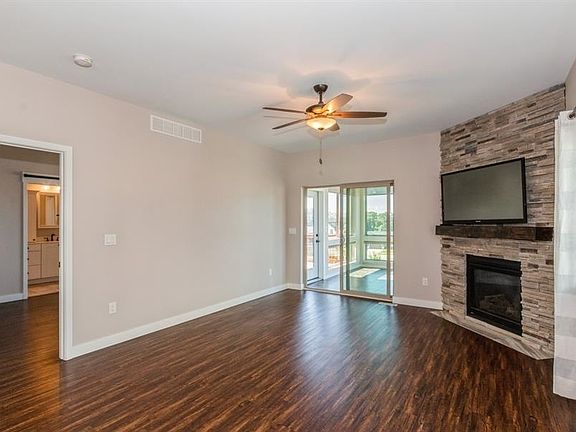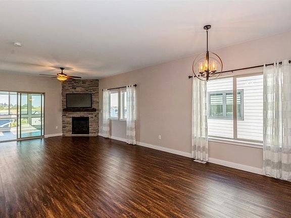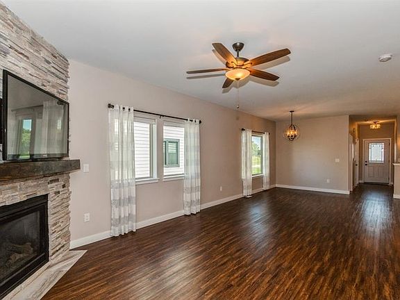 Better than NEW with all the upgrades! Open floor plan has LVP flooring throughout! Stone gas fireplace to ceiling! 14x12 4 seasons sun porch with walls of windows, solar blinds, wall HVAC unit and door to deck with steps to fenced backyard! Kitchen has upgraded 36" white cabinets, gas stove, granite countertops, coffee bar, walk-in pantry, trash compactor & tile backsplash. Laundry room with tons of storage & washer/dryer stay. Primary bedroom features custom barn door, extra center vanity cabinet, tile shower & double sink. Finished walk-out lower level, extended concrete patio, & garden room with extra window and glass doors. Garden room could be converted to 4th bedroom. Front deck and beautiful landscaping. Plus all mounted TVs stay with home!