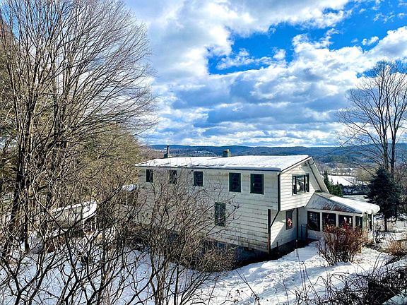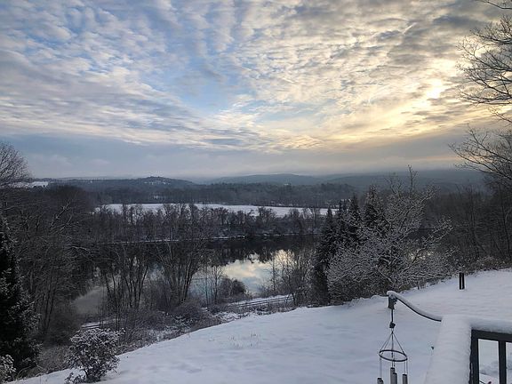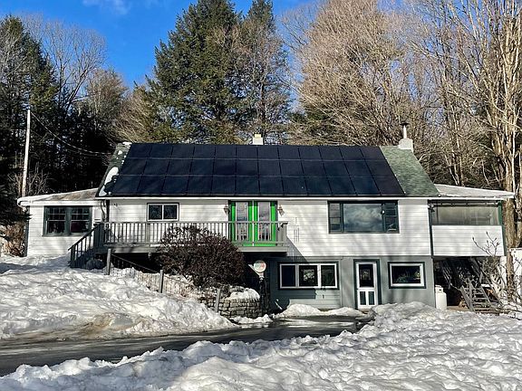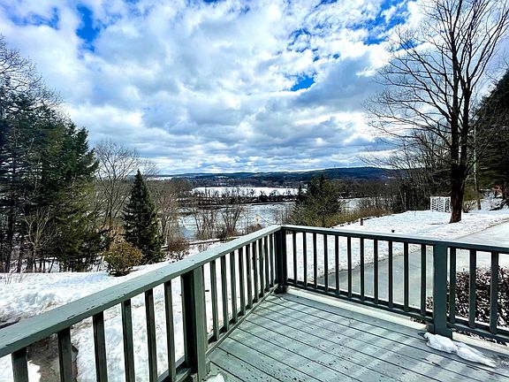Wake up every day to a spectacular view of the CT river, rolling hills, and expansive fields! This home offers beautiful vistas from its open concept first floor, covered screened porch, front deck and walk-out basement, including soaring bald eagles and the occasional passing train in the valley below. The cozy, pine-paneled interior has a 1st floor bedroom and a wood stove for winter cheer; the second floor provides 3 more rooms for bedroom or office space. The basement’s large picture windows let in lots of light, and provide generous space for a workshop, studio, storage, and laundry room. This energy-efficient home includes a10 kW solar system, heat pump mini splits, and an HRV for year-round fresh air. Tesla batteries supply backup power, a gravity-fed spring provides backup water. Additional features include a mudroom, chicken coop, tool shed, mature perennial and permaculture plantings, and more! See owner’s comments for more details. Showing to begin Feb. 18. 2023.