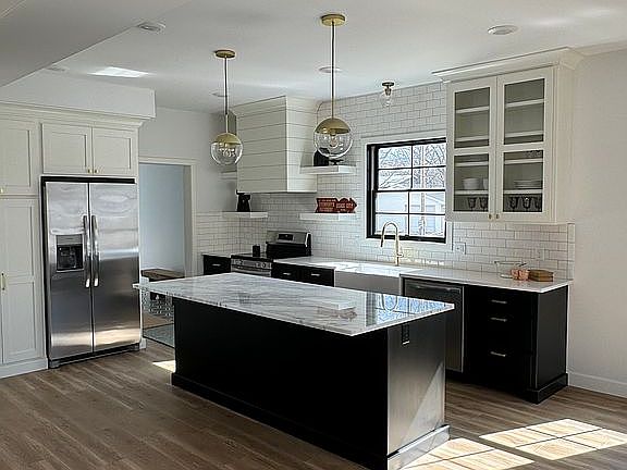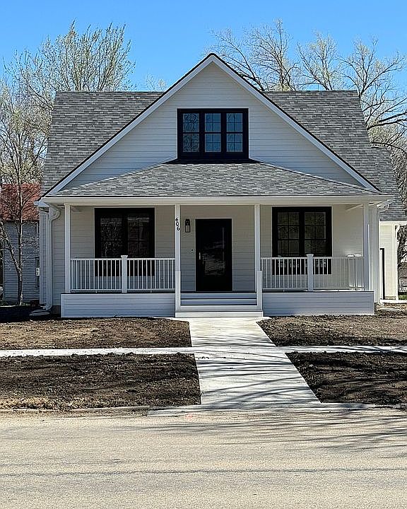 New build modern farmhouse on the most historical and established residential street in Osage City, situated on a double lot only one block from Osage City Schools. Spacious front porch (247 sq ft) with low maintenance Taco Evergrain composite flooring leads to an open plan living/dining/kitchen full of natural light. Living room features a gas fireplace with a shiplap feature wall. Custom Wood Products kitchen boasts a pantry cupboard with pull out shelves, all new appliances including an integrated microwave drawer, a farmhouse sink and both open and closed shelving. Perimeter counters are quartz and the island (which seats four) counter is marble. Down the hall on the main floor is the primary bedroom, with barn doors leading to the en suite bathroom with double sinks in a vanity by Custom Wood Products and a walk in shower. Off of the bathroom is a 12’ x 7’ walk in closet. Also on the main floor, a spacious mudroom with access from the exterior as well as from the garage. A separate hall off of the mudroom leads to a powder room and large laundry closet with an additional sink. Upstairs is a large landing with numerous possibilities - home office, playroom, library, etc. There are two bedrooms with ceiling fans and walk in closets. One room features a fun reading/sleeping nook. A large bathroom between the two bedrooms up has a shower/tub combo, a double sink vanity by Custom Wood Products and a large closet. There is a full, unfinished basement that has been plumbed for a full bathroom and an egress window for a possible fourth bedroom. Other features: an oversize garage, both bat and blown in insulation, double pane insulated low E4 glass Andersen windows, Smart Lap siding with diamond coating and a 30 year warranty and a two zone heating and air conditioning system. LVP flooring, carpet and beautiful tile throughout. This home is solidly built with great attention to detail and was designed with love for the special small town that is Osage City.