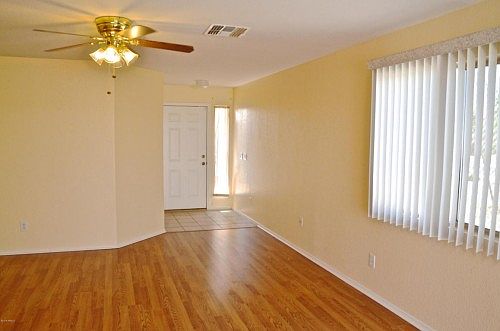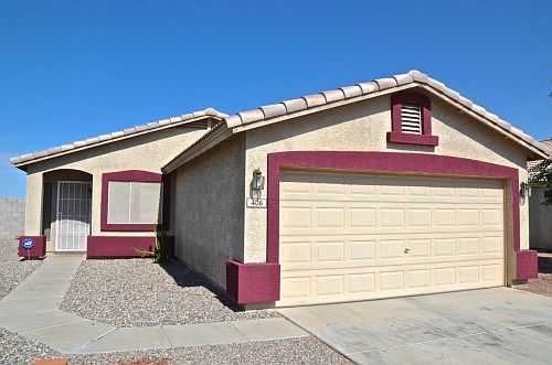 Complete info: http://406s9thstreet.AgentMarketing.com - You must take a look at this wonderful floor plan. Cozy, with a spacious feel. A corner lot with mountain views and very little yard work will make you want to see more. Once you walk thru the front door you will see a very well maintained home. Kitchen has plenty of cabinets and Tile Flooring. Refrigerator Included. All Bedrooms have laminate wood flooring. Master bdr has nice sized walk-in closet and private bath. Ceiling fans in every room too. Estrella Mountain Views from the backyard. Two car garage with opener. Located minutes from downtown Buckeye. Very near Buckeye Community Pool and lots of local shopping. This is a great area. HOA Dues are only $24 month. Come make an offer on this gently lived in home. All offers to be reviewed 7/31