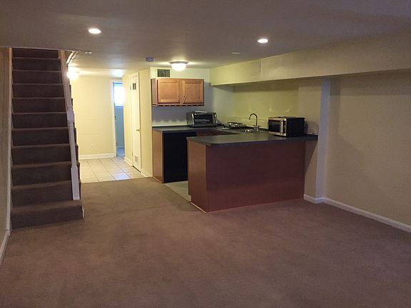 Basement studio unit with full bath and kitchen. Overall dimensions approx 42 x 13. Private rear access, with house access to washer/dryer and rooftop deck. Offstreet parking available in rear pad for extra $50/month. Please view video tour at Fryer development.com and submit the free online application if you'd like to proceed. Prorated First & Last months rent plus $1,000 security deposit required to move in. Rent also includes free WIFI and offstreet parking pad included with this unit. Utility escrow is 200/mo (covers gas, electic, water, sewer, & trash & Free laundry in building.) Total rent with everything included is $850/month