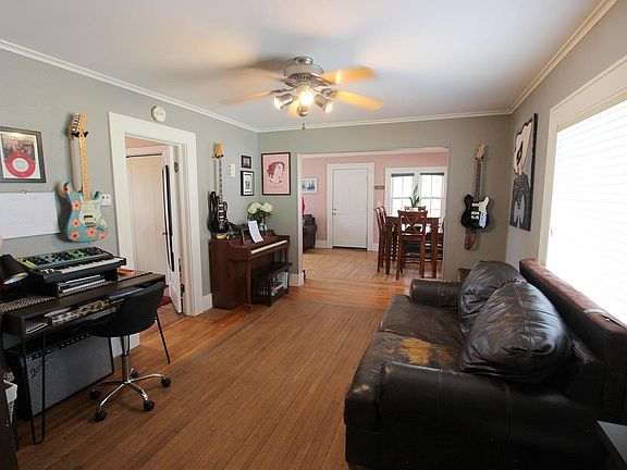 This darling bungalow has a covered front porch that is awaiting your arrival. The front door opens into the spacious living room and dining room areas, there are two bedrooms that are separated by a full bathroom, a well-lit kitchen in the back of the house, and a mud room that exits to the backyard. The carpet has been removed so the new buyer can easily replace it with new carpet or rugs. In the backyard, there is access to the basement cellar, a new deck that overlooks the backyard and comes with wood benches that are stained to match the deck, and a patio that includes a mounted tv on the side of the detached 2-car garage. The .23 acre lot to the south is also included in the purchase of this property. Schedule your showing appointment quickly so you don't miss out.