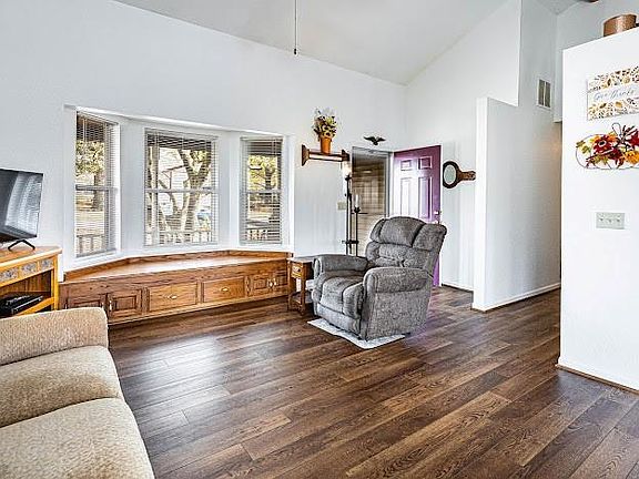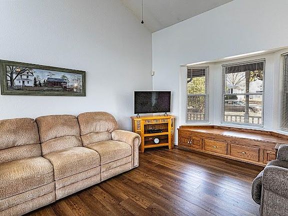 YOU'VE FOUND IT! Experience small-town charm and single-level living at its finest. With vaulted ceilings, bay windows, and custom built-ins, this home is a must-see. The open living and dining areas are warm and inviting, featuring French doors out to a spacious deck. The kitchen boasts ample storage with beautifully stained cabinets, modern countertops, and a durable resin sink, all complemented by a cozy family room/dining space. Enjoy the convenience of a laundry room with additional storage just off the garage entrance, along with updated bathrooms and a lovely patio area out back. Located on a quiet street with fantastic neighbors. Key features include luxury vinyl plank flooring throughout, walk-in showers in both bathrooms, a newer roof, generous room sizes, an insulated garage door, and so much more. Come see for yourself, look around, fall in love and send an offer!