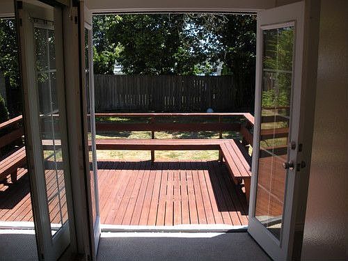 Located one block from Montevilla and a couple minutes walk from Mt. Tabor park. This two (2) bedroom townhome with Air Conditioning has many features. Large Capacity Washer & dryer are provided. Private back deck overlooking the pet friendly yard. This is a single floor home. On a major bus line.