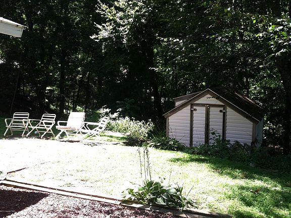 NO MORE SHOWINGS AT THIS TIME. Cute as a Button. This lovely Cottage has such charm with its Stone Fireplace, Wood and Ceramic Flooring, Skylight, Original Built-ins, Claw Foot tub, and Glass Window Doors with original knobs. The Large Master bedroom is on the first floor for convenience. Second Floor offers Large Bedroom/loft, office/possible bedroom and full bathroom. Enjoy the back patio and grassy yard all with privacy behind the home. Long driveway for parking and large shed. Just move in and unpack. Convenient to Route 33, Route 80 and all Pocono Attractions. Call today.
