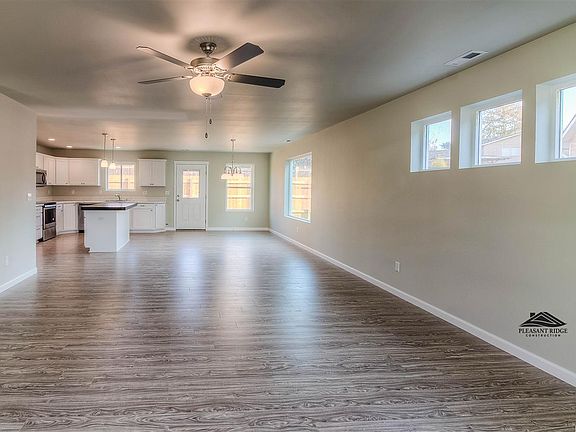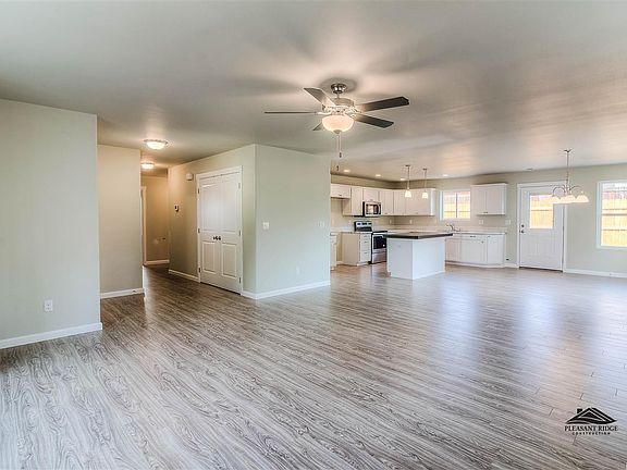 Light-filled, open concept new construction single level home located in a wonderful, gated community. Light and airy color scheme reflects the natural light and provides a restful, relaxing retreat. Enjoy a large kitchen island with a wood slab look. Master has a walk-in closet and double vanity bathroom. The other bedrooms are generous with room for the dresser in the closet. Back patio is concrete the full length of the home for lots of outdoor seating/dining options. A smaller side yard means less mowing and more relaxing. Yard has perimeter cedar fencing and timed under ground sprinklers on irrigation water. A generous 24x24 finished garage completes the package. This home was proudly built by Pleasant Ridge Construction and comes with a 2-10 Homebuyer's Warranty.