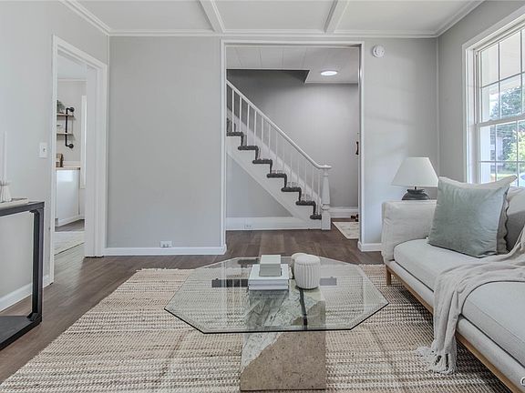 Here's a beautifully remodeled 2-story home that perfectly blends modern updates with timeless charm. Step inside to find a good size living space, along with a bright and inviting kitchen featuring crisp white cabinetry, butcher block countertops, and stainless-steel appliances, flowing seamlessly into a formal dining room—perfect for entertaining.