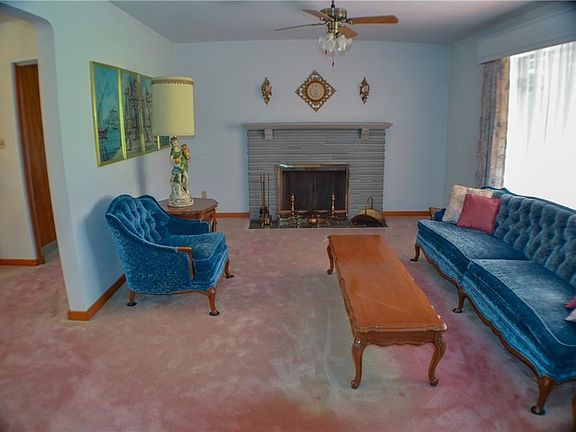 Welcome to this well constructed, three bedroom, brick ranch. Enter this home, from its covered front porch. A formal entry with large coat closet is the perfect place to greet your guests. As you leave the entry, you will arrive in the spacious living room with plaster walls, HW floors and a stone fireplace, with gas starter. The LR is open to the formal DR with a large window, that overlooks the level, spacious, rear yard. The KIT offers space for your breakfast table. It has ample cabinet storage, built-in appliances and grants access to the attached garage, basement or side patio. Three bedrooms, the owner's bedroom offering a 3/4 ceramic tiled bathroom, offer gorgeous hardwood floors, tons of closet storage and plaster walls. The main, full bathroom offers ceramic tiled floor and walls. The lower level of this home, could be finished for tons of additional living space. A double car attached garage, side patio and huge, level yard, make this a great place to call home!