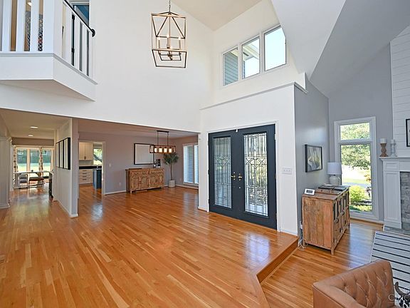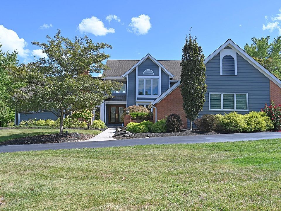 WOW! Imagine the fun you'll have entertaining on your private oasis. Gunite pool, pavilion with putting green, fire pit, trampoline, basketball goal and shed. Bathroom with outside access. First floor primary bedroom with relaxing, sitting area. Two walk in closets and deluxe bathroom. Private study with built in desk and bookshelves. Perfect for working from home or home work area. Gourmet kitchen with gas cooktop, island, breakfast room with windows to greet the morning sun. Hardwood floors. 2 support bedrooms upstairs with cat walk overlooking family room. Lower level finished with more entertaining space complete with bar and full bath. Call today to see this amazing home!