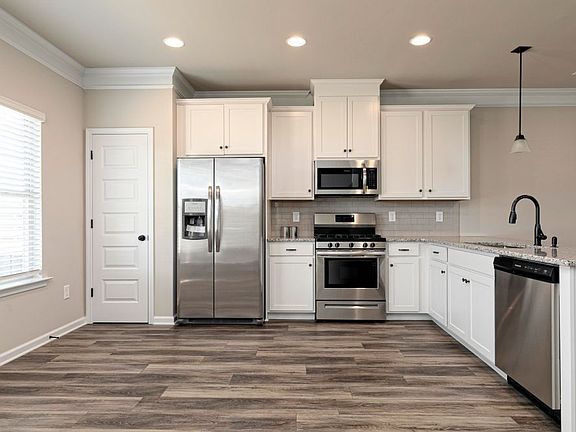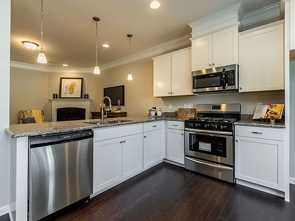 Contemporary loft-style living is found in The Manchester by Smith Douglas Homes, with its open kitchen-dining-living combination. The kitchen has convenient access to the rear yard, making barbecues a breeze. The upstairs is highlighted by the owner's suite with a bath complete with walk-in closet and separate water closet. Two bedrooms and a full hall bath, plus the convenience of a second-floor laundry room, complete the package.
