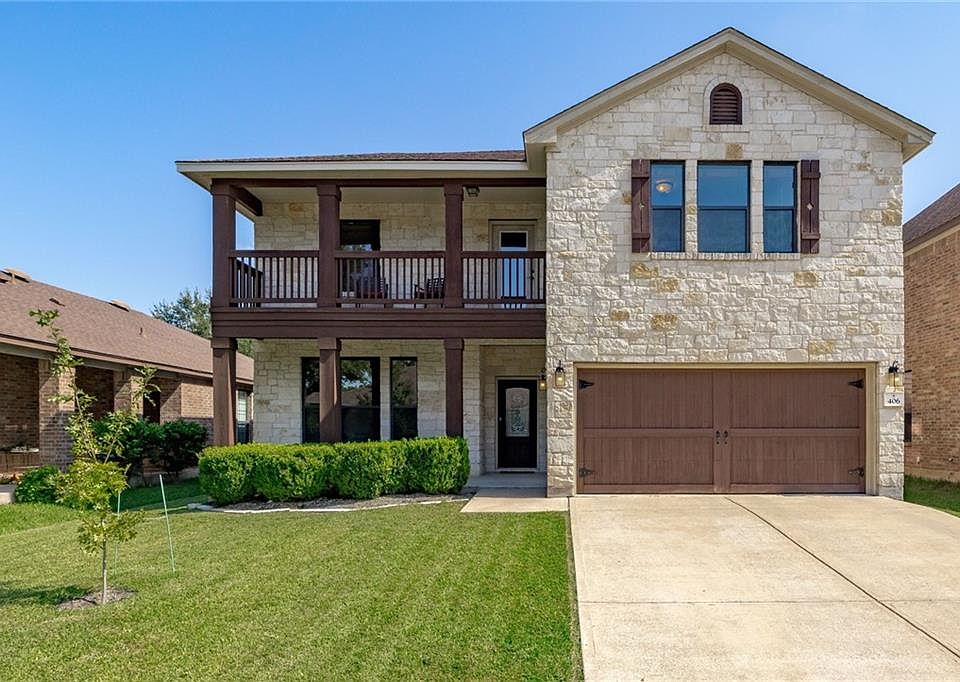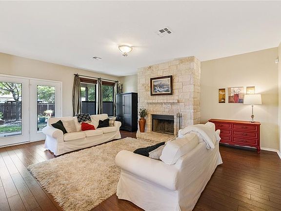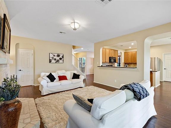 Charming Two Story 4 Bedroom 2.5 Bath with Study, Formal Dining and Bonus/Game room. Island Kitchen features Breakfast area, ample cabinet/storage space and a large walk-in pantry/utility room. Gorgeous Stone fireplace in Living and Wood Floors throughout on 1st level. Spacious bedrooms up, all with walk in closets. Large Covered Porch overlooks big backyard, Covered Patio and Balcony off the the Bonus/Game room. Home is Move In ready!