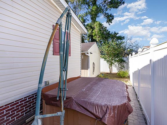 Welcome to this fully furnished 3-bedroom, 2-bathroom gem, move-in ready and just waiting for you! Simply bring your toothbrush and swim trunks. Nestled on a desirable corner lot, this home boasts two dedicated parking pads and a fully fenced yard, offering privacy and convenience. Step inside to a spacious family room, perfect for relaxation or entertaining. The cozy fireplace takes the edge off those in-between-season chills, while the 60" TV and comfortable La-Z-Boy furniture make it easy to unwind after a day at the beach. With a golf cart, you're just minutes away from cruising to the shore. The eat-in kitchen is equipped with a breakfast bar, ample cabinet space, and all the pots, pans, and utensils you need to cook up your fresh catch. All appliances, including the washer and dryer, are included. The split bedroom layout ensures privacy, with well-sized secondary bedrooms. The owner's suite is a true retreat, featuring a large ensuite bathroom with a luxurious jetted tub, walk-in shower, double sinks, and an oversized walk-in closet - your personal sanctuary. Outside, you'll find a hot tub, patio, and a cozy sitting area, perfect for unwinding after a long day. The shed provides additional storage and comes stocked with beach chairs, bikes, and more for your beach adventures. The fully fenced yard offers a secure space for outdoor activities or relaxing in privacy. This move-in ready home is designed for effortless beachside living. Whether you're looking for a full-time residence or a getaway spot for a week at a time, don't miss this opportunity to start your new beach life today!