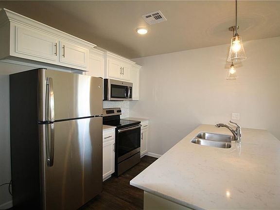 **AVAILABLE 1/15** ALL appliances included! Super cute modern 2 Bedroom, 2 Bathroom duplex. Open floor plan with wood-grain flooring throughout. Quartz counter tops in kitchen and baths, breakfast bar, stainless steel appliances and refrigerator is included! Master suite features single vanity, shower/tub combo and closet. Washer/Dryer ARE included! Cute covered front porch. Lawn Care Included! Your furry family members are welcome on a case-by case basis with additional refundable deposit per-pet. Interested parties to verify schools. TEXT or email for your tour today!