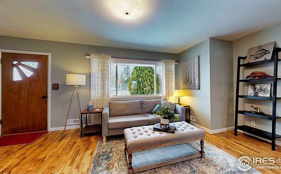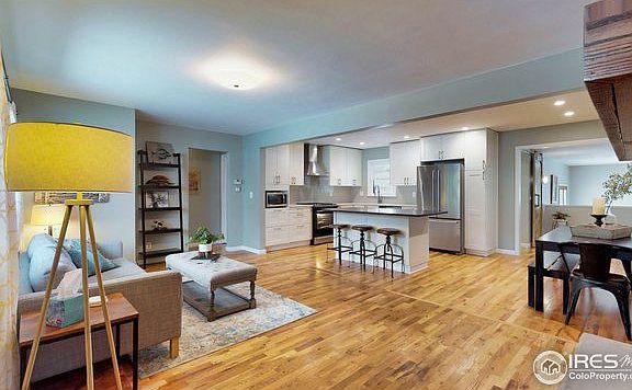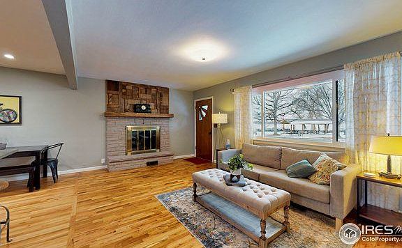 VIEWS of Lake Loveland right out your front door & directly across the street from Dwayne Webster Veteran Park! Don't miss this beautifully remodeled gem in the heart of Loveland, WITH attached 2 car garage! Nearly 1,700 sqft all on one level! Fully updated home including new baths, luxurious kitchen w/gas range, quartz counters, premium cabs & more. Bright open floor plan, situated on large manicured nearly 10K sf alley access lot. Both sheds included. Easy to show & sell! See link for virtual tour for drone video & 3D walkthrough of entire home.