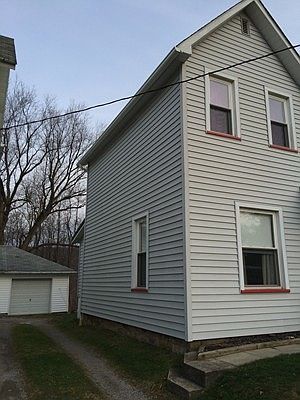 Large 3 bedroom, 1.75 bath, 2 story vinyl sided home with replacement windows, convenience of first floor laundry and 3/4 bath, modern kitchen with appliances, 1 car detached garage, shared driveway. This property has 2 extra parcels which makes total of .49 acres.