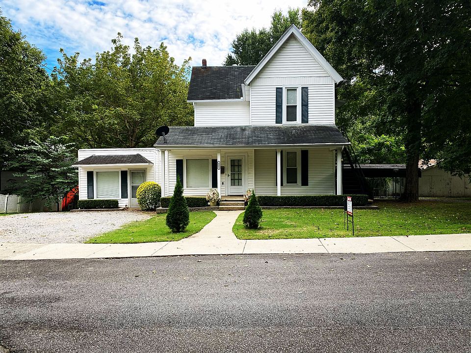 BEAUTY!! This two story offers so much charm -newer windows, hvac, flooring, granite countertops,brand new gas stove, very nice red oak hardwoods plenty of room to grow formal dining room,new carpet in master , over head stained glass ,media room , bonus with fire-safe steel steps,fenced in back yard covered carport , nice large front porch SimpliSafe Alarms System second floor has very large ceilings air vent over head drop ceilings , a cellar with electricity nice place to have extra storage