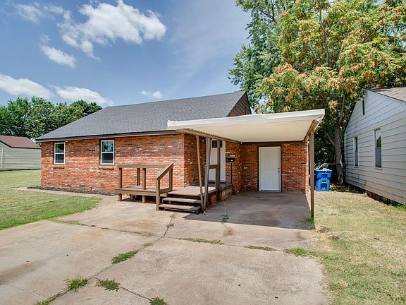 Step inside this bright and cheerful 3 bedroom, 1 bath brick home and fall in love with its fresh, modern updates. Recently remodeled from top to bottom, this home features all new windows that fill each room with natural light, along with new flooring throughout for a crisp, clean look. The kitchen boasts new cabinets, granite countertops and a brand new gas stove. The bathroom features a new tub & shower, commode and basically everything else. Relax on the covered patio while overlooking the huge side/backyard, offering endless possibilities for gardening, play or outdoor gatherings. Additional highlights include a storm shelter for peace of mind and a location on a quiet street, giving you the privacy and comfort you deserve. This move-in-ready gem blends modern convenience with timeless charm- schedule your showing today!! Roof installed 10/2019 and new HVAC 7/2023.
