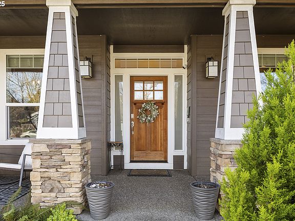 Nestled in a desirable North Newberg neighborhood near parks and schools, this quality-built home by Willamette Valley Homes blends timeless architecture with modern updates. Inside, you'll find durable "Hickory" LVP flooring, elegant built-ins, and a freshly painted interior throughout. Custom blinds, including blackout options, add both style and functionality. The beautifully updated kitchen and laundry room boast sleek quartz countertops, refreshed cabinetry, and new stainless steel appliances. With five spacious bedrooms plus a versatile bonus space, this home offers incredible flexibility. The main-level office, complete with a walk-in-closet, could serve as a sixth bedroom if needed. The inviting primary suite showcases a reclaimed wood feature wall and a luxurious California Closet upgrade for exceptional organization. A 3-car garage includes a tandem space currently used as a home gym. Step outside to a lovely extended deck, perfect for outdoor entertaining. The fully fenced yard features low-maintenance turf with a 7-inch gravel base for superior drainage, a brand-new privacy fence, raised garden beds, and a lean-to shed for additional storage. A private security system with cameras provides added peace of mind. This home has been lovingly cared for and thoughtfully updated - it's the perfect place to call home!
