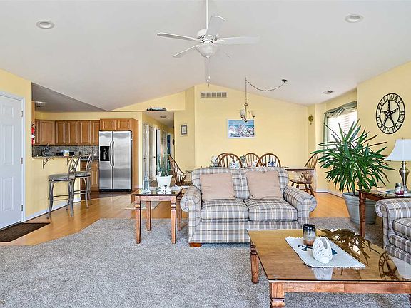 This top floor unit at the LH Harbor Condominiums is located in the Wildwood marina district and is walking distance to waterfront dining, boating and other water activities. It's also conveniently located near supermarket, pharmacies and convenience store. This modern unit offers 3 bedrooms and 2 full baths. The master suite is complete with private bath and walk-in closet. There is a fully equipped kitchen with granite tops, stainless steel appliances, beautiful tile back splash and snack counter. The spacious dining area and living room have a vaulted ceiling that gives the unit an open feel. Off the living room, there are two sets of sliders that lead to a private deck. The laundry room is equipped with washer and dryer and offers additional room for storage. The unit is equipped with gas heat and central for year-round enjoyment. The 2-car garage with large storage room can be accessed in the rear of the complex.