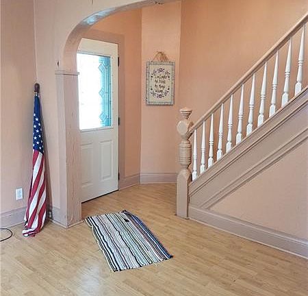 This three bedroom home offers a newer roof, soffit, fascia, gutters, downspouts, furnace, and hot water tank all in 2016. The Master Bedroom has its own sitting room, nursery, etc. (9' x 6.5') A second bedroom has a (9' x 5.5') room with a large closet. The windows have been upgraded. It offers a large front porch for your Summer pleasure. It is a nice in town home on a nice corner lot. There is off street parking in the back of the home. It is close to all amenities. It is ready to move right in.