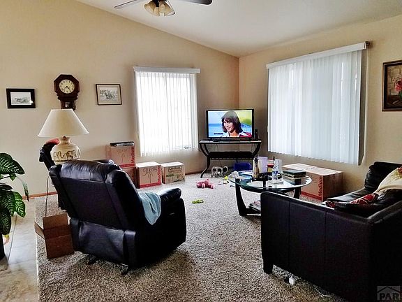 This Pueblo West Rancher with full finished basement awaits its new owner! Main level features nice sized Master with his/hers closets and full bath, vaulted ceiling, ceiling fans and plant shelving. Bright open kitchen and separate dining area with sliding doors to patio. Basement is finished with large family room and 2 additional bedrooms. Enjoy the fantastic Mountain Views from the back deck. Located on Corner lot with lots of room for RV parking. Close to shopping and amenities.