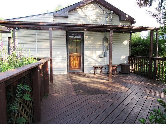 Adorable ranch/bungalow on quiet street. 2 big bdrms, big dining rm, eat-in kitchen & spacious living rm. Newer roof, gutters & siding (approx 3 yrs old); cvrd front porch. Lrg deck in back w/ sidewalk leading to a great 2-c pole barn garage w/concrete floor, wood burning stove, bth, kitchen area for cooking, remote garage door opener & loft area for more storage. Just waiting for my new owner(s) to give me some love & make me their own!