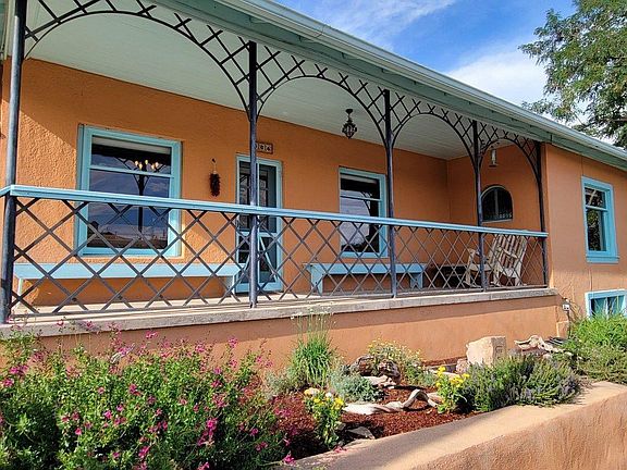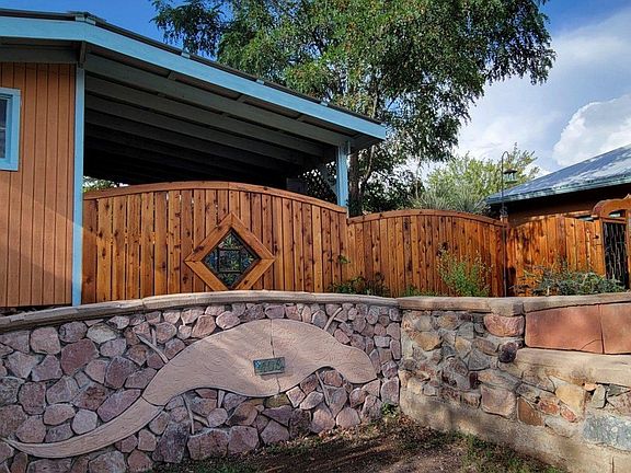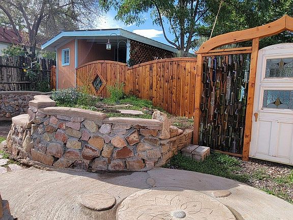 Wonderful 2 bed, 1 bath adobe home is located downtown Silver City at the base of Chihuahua Hill and offers the best of historic Silver City! The home has been lovingly cared for and restored which is reflected in the custom hardscaping, carved stone works, leaded glass windows, fences and gorgeous bottle wall entrance created by artisan Johnny P. Historically appropriate leaded glass work was expertly crafted by another local artist, Angus MacPherson. This home is known as the "Enchilada House" on the Chihuahua Hill historical walking tour because it was the place to buy pans on enchiladas. The backyard features a new hot tub, a fire pit and a carport turned into a ramada-currently used for outdoor dining and entertaining! Hands down, this home is stunning! Prime location is just a few blocks to the walking trails at Boston Hill. Great views of La Capilla to enjoy while relaxing on the classic front porch. This property is TURNKEY includes all furnishings!
