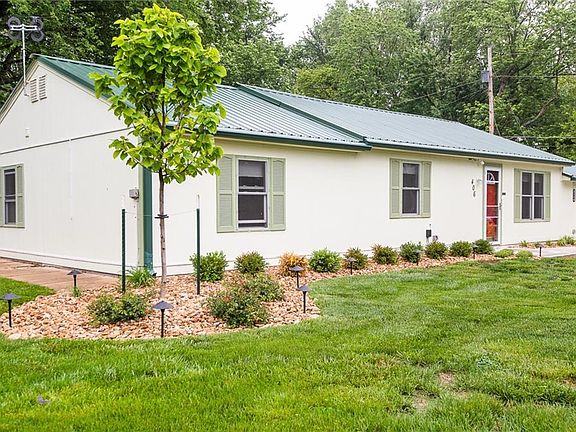 The classic ranch home was remodeled 2 years ago-Roof, HVAC, tankless water heater, plumbing, electrical. LVT flooring is new. Sharp and clean. Granite counters, stainless appliances, open floor plan, zero step entry. All appliances, including washer/dryer. 1 car detached garage and convenient shed paved all the way to the street. Beautiful white privacy fence around the patio and part of back yard give you a spot to grill, add a hot tub or hang out with furry friends. Great easy maintenance landscaping. Space beside the home is over 50' deep to park your camper or boat. Great location in a small town with easy access to the metro KC area.